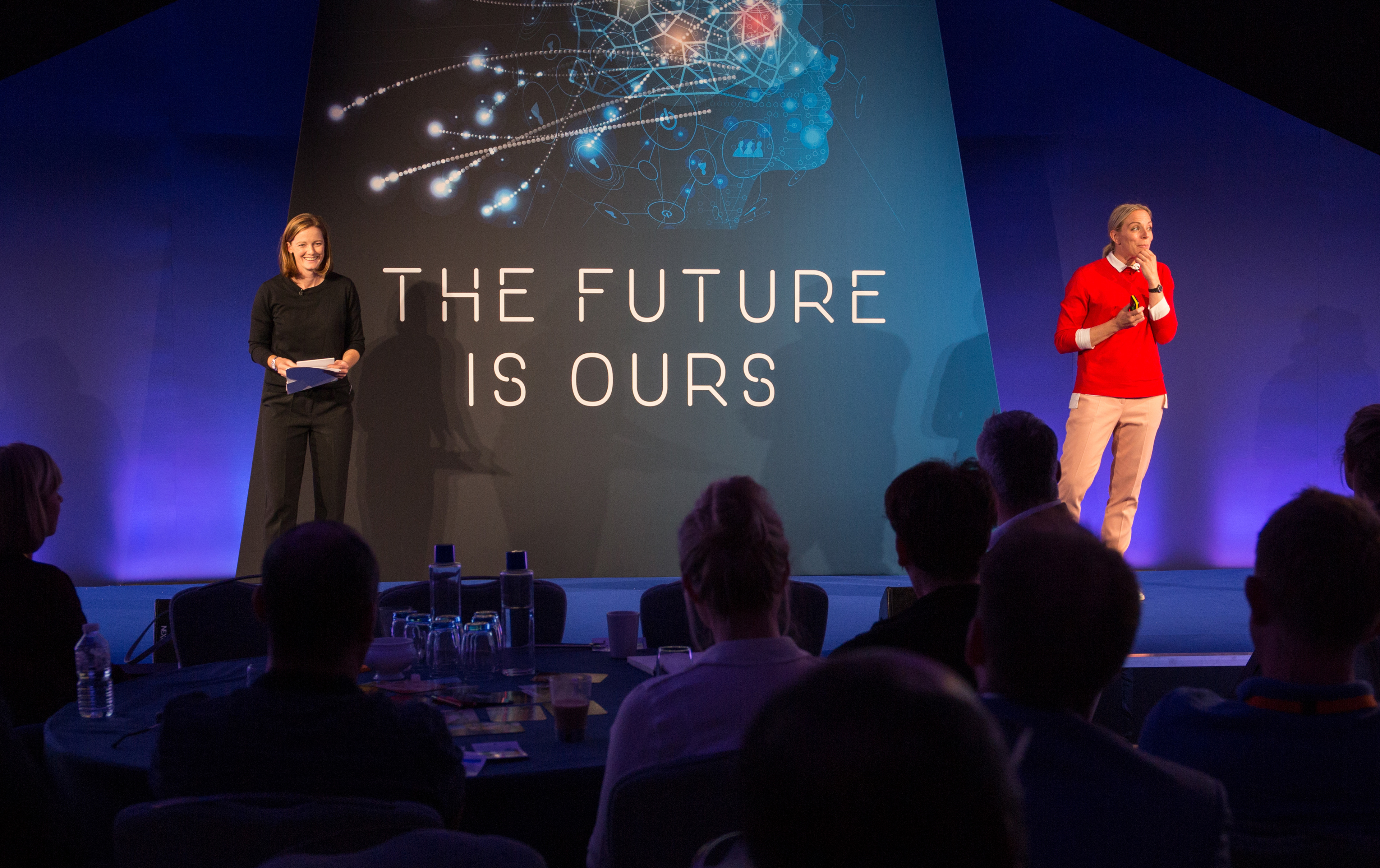 This is the holding image and slide template I created for a pharmaceutical conference with a theme of 'The Future is Ours'. They requested a template with dark and light options and plenty of clear space for content and graphs.